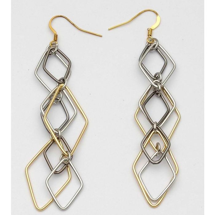 Σκουλαρίκια μεταλλικές αλυσίδες απο ρόμβους σε 3 χρώματα