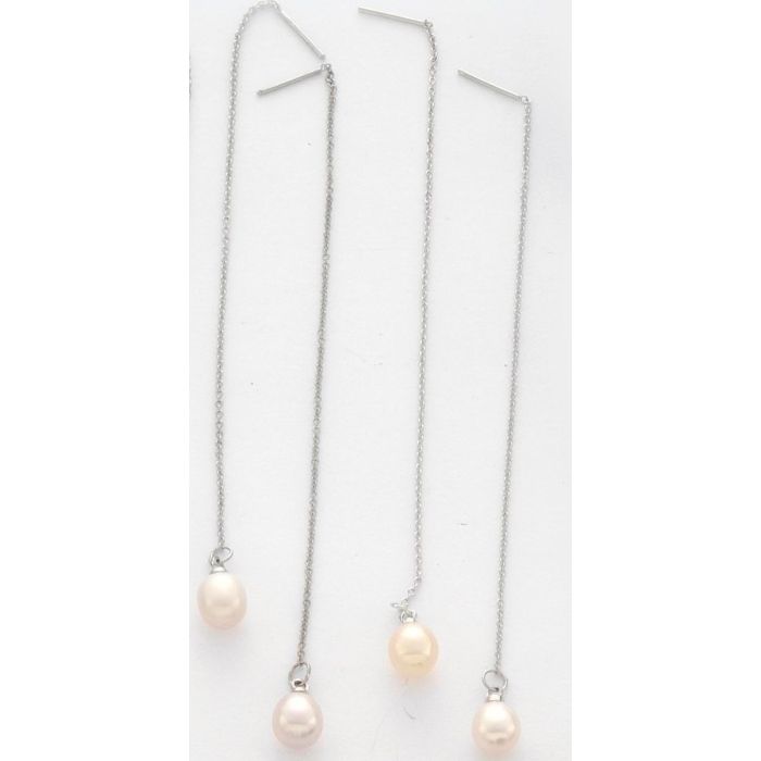 Σκουλαρίκια μεταλλική ασημί αλυσίδα διακοσμημένη με πέρλα σε δύο χρώματα