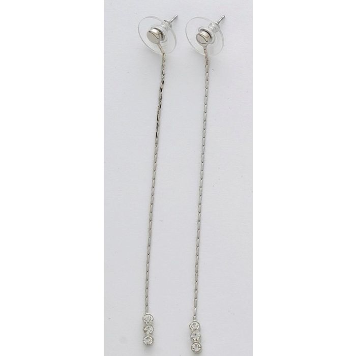 Σκουλαρίκια μεταλλική λεπτή αλυσίδα σε ασημί χρώμα διακοσμημένη με 3 μικρά λευκά στράς