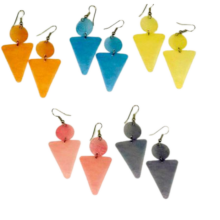 Description / Σκουλαρίκια πλαστικά με γεωμετρικά σχήματα σε 5 χρώματα