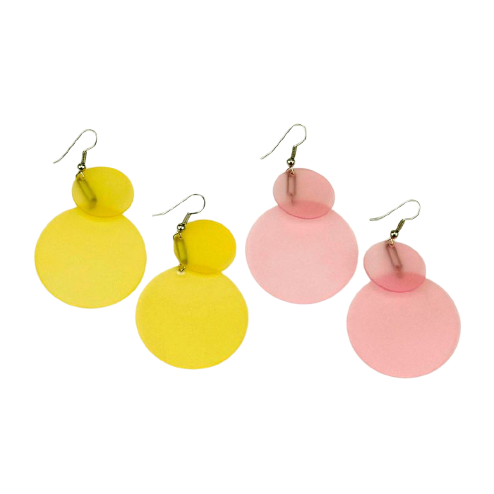Ανανεώστε το καθημερινό σας στυλ με αυτά τα μοντέρνα σκουλαρίκια πλαστικούς κύκλους σε τέσσερα ζωντανά χρώματα. Ελαφριά και άνετα, προσθέτουν παιχνιδιάρικη νότα σε κάθε εμφάνιση.