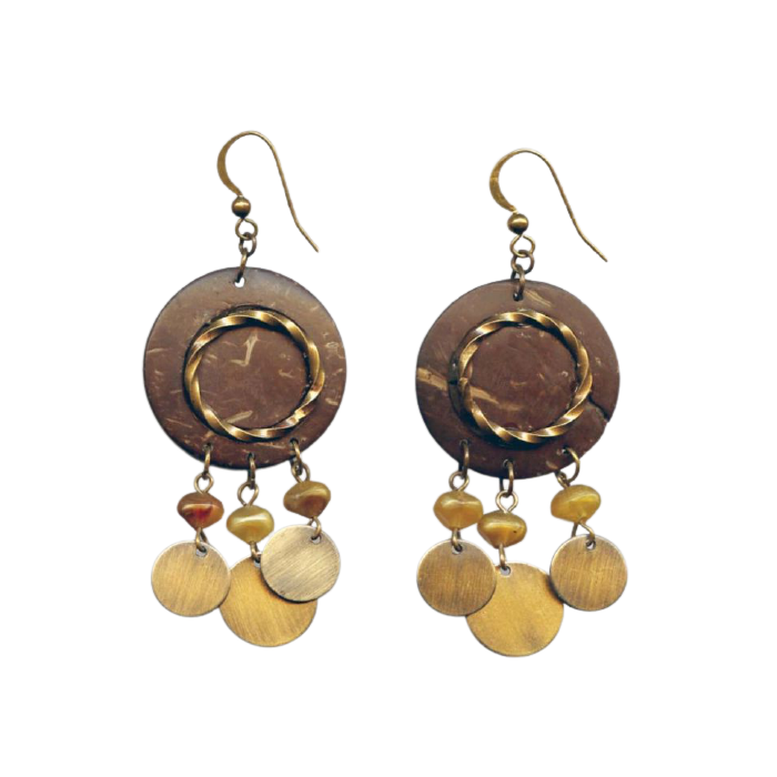 Σκουλαρίκια ξύλινα με μπρούτζινες λεπτομέρειες και πέτρες