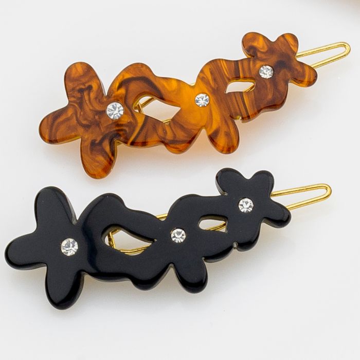Description / Τσιμπιδάκι με λουλούδια σε καφέ και μαύρο