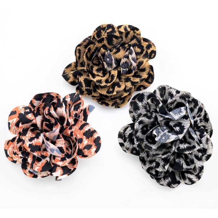 Υφασμάτινα κλιπ λουλούδια μαλλιών με λεοπάρ μοτίβο